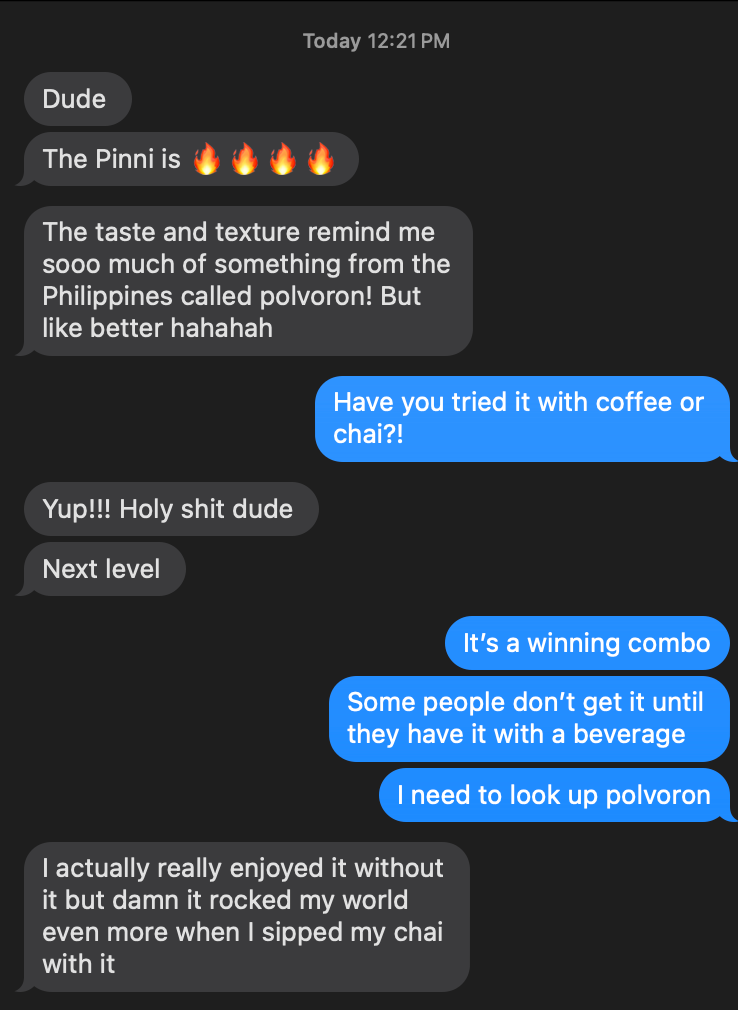 Every snack is handmade by us (Reena & Ty) in San Francisco. We prioritize quality, freshness, and seasonal flavor over everything else.