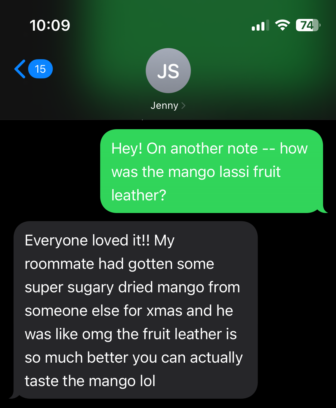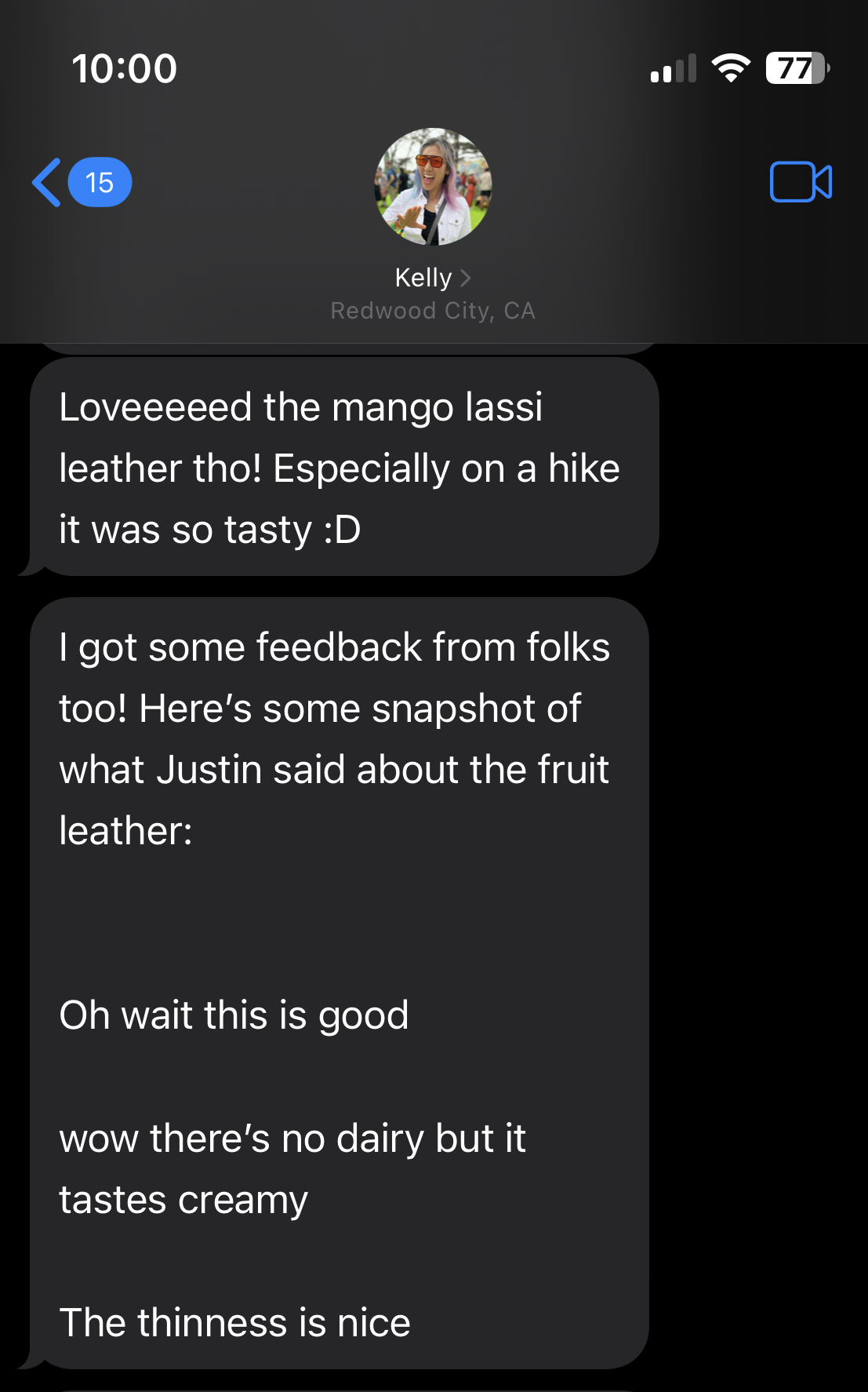 Our Peach Lassi Leather makes its debut: fresh yellow peaches, slow-roasted with cinnamon and cloves, blended with coconut, then dehydrated into chewy perfection. Peach cobbler or peach lassi in fruit leather form? You decide.
